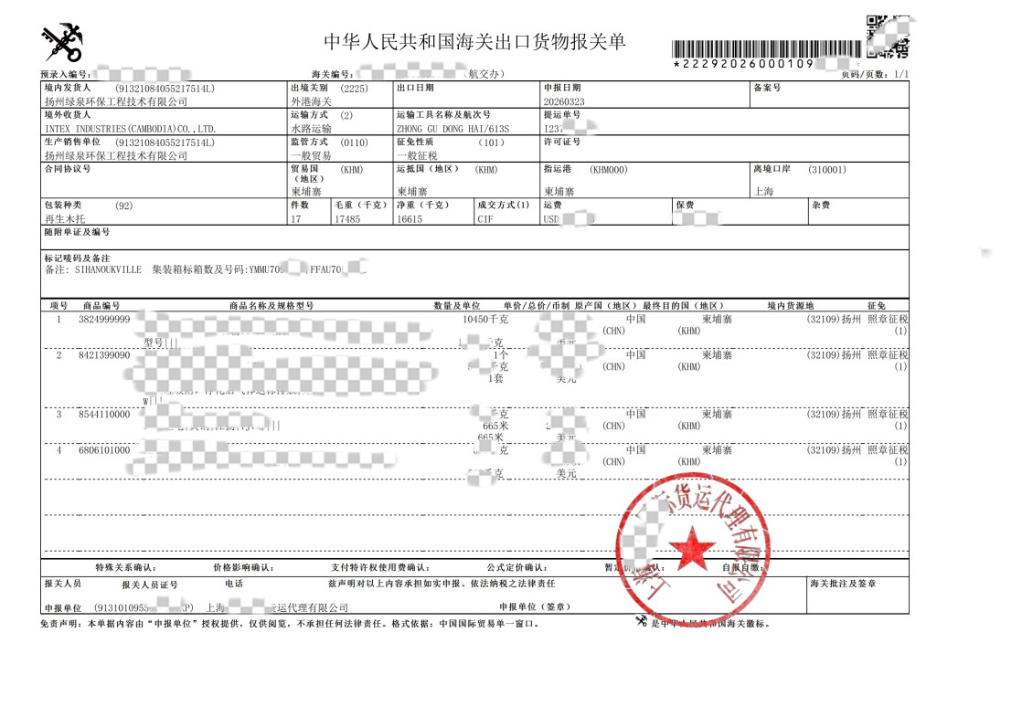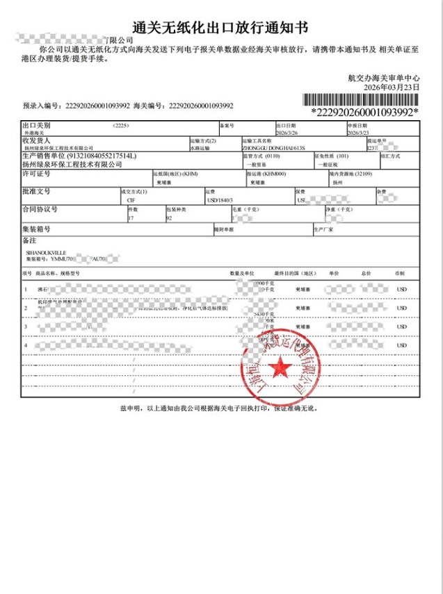 طبق گزارش ها، جدول زمانی این تحویل هم فشرده و هم بسیار کارآمد بود. در 22 ام، تجهیزات با موفقیت برداشته شد و بلافاصله در همان روز بر روی یک کشتی بارگیری شد. متعاقباً، ناو با موفقیت در 26th به حرکت در آمد و تجهیزات را از طریق آبراه به کامبوج منتقل کرد. این تحویل نه تنها قابلیت های اجرایی بسیار کارآمد Lvquan Environmental را در مدیریت لجستیک فرامرزی نشان می دهد، بلکه موقعیت فنی پیشرو آن را در زمینه تصفیه گازهای زباله صنعتی برای صنعت چاپ نیز به نمایش می گذارد.